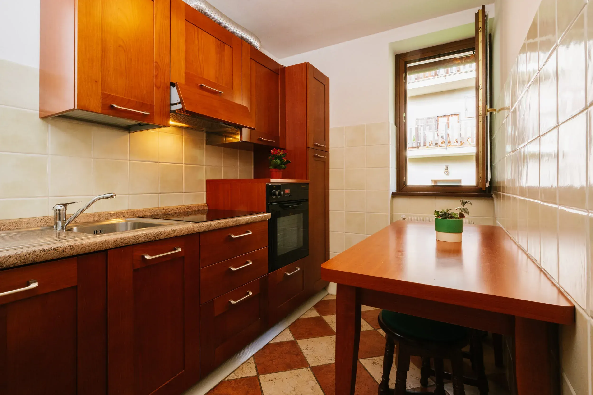 La cucina, semplice e funzionale, è l'alleata perfetta per preparare i pasti e riunirsi a tavola, con il panorama che fa da cornice.